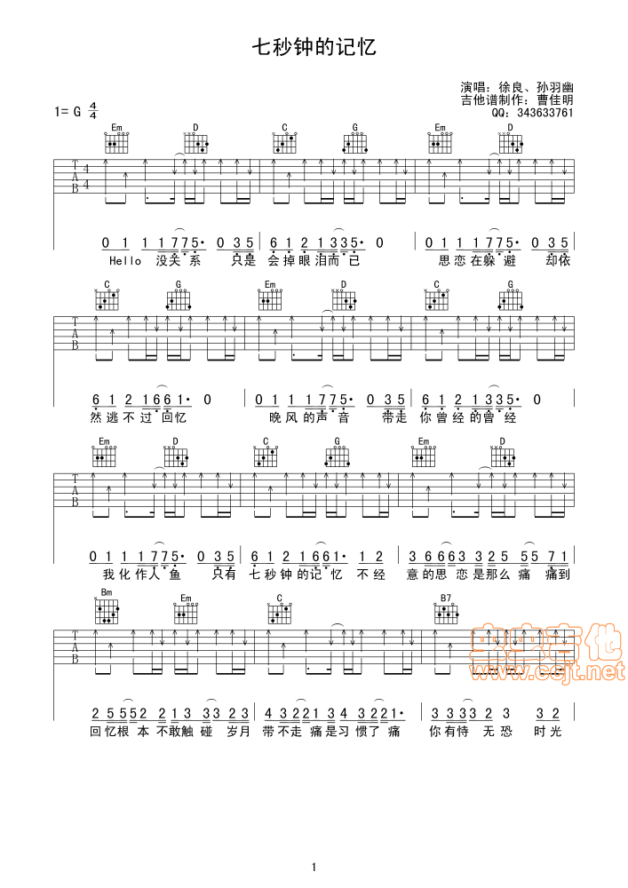 七秒钟的记忆吉他谱 - 徐良 - 吉他弹唱谱