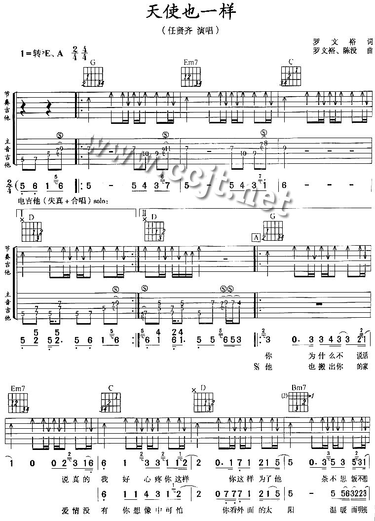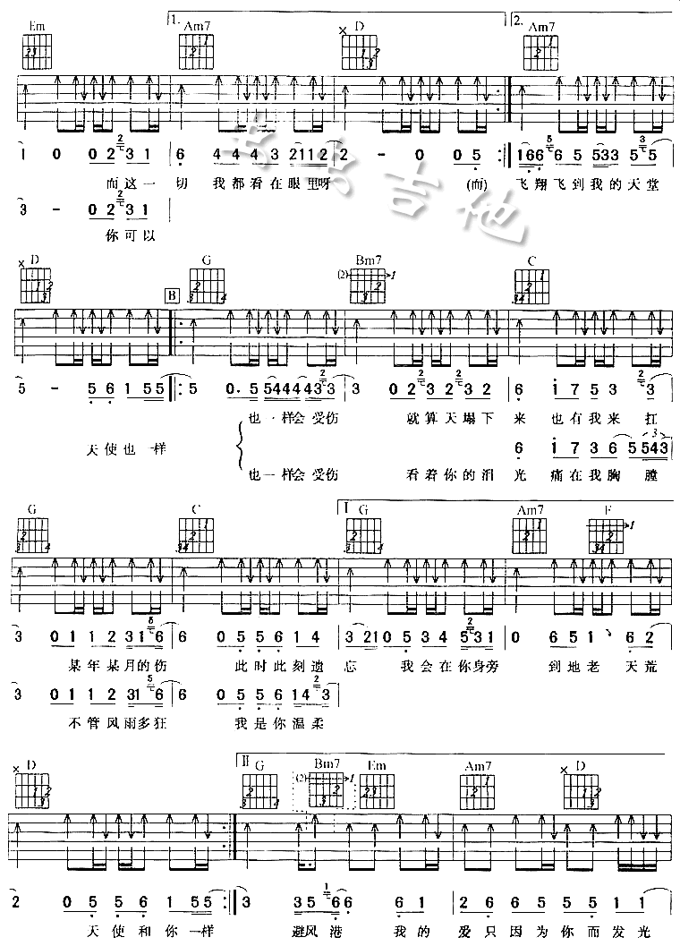 当前位置:琴谱网>吉他弹唱>天使也一样