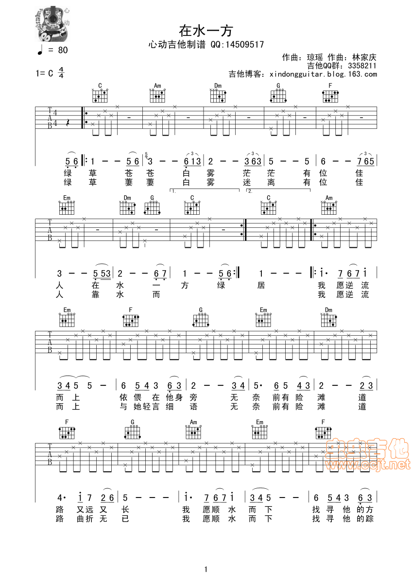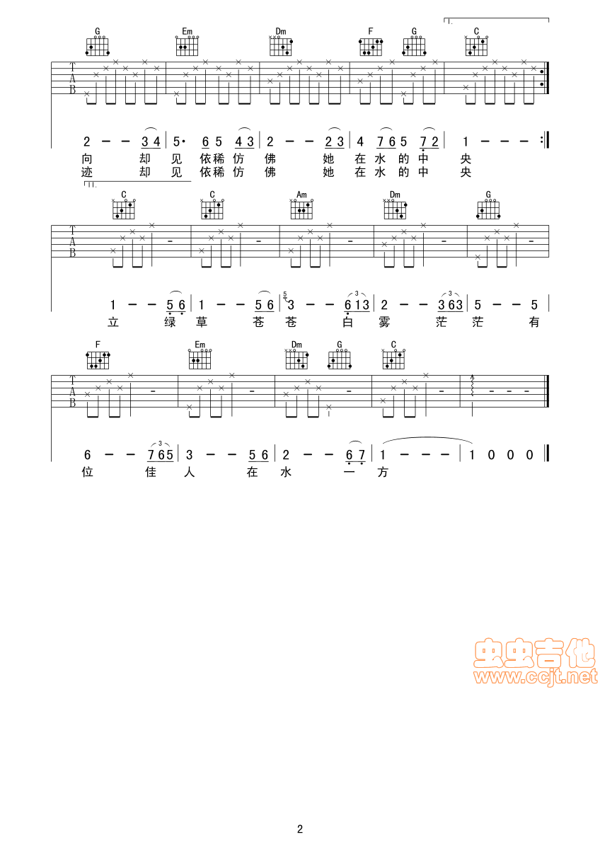 在水一方吉他谱 - 吉他弹唱谱