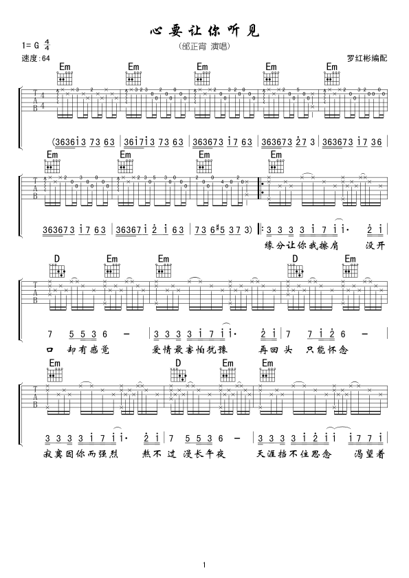 当前位置:琴谱网>吉他弹唱>心要让你听见