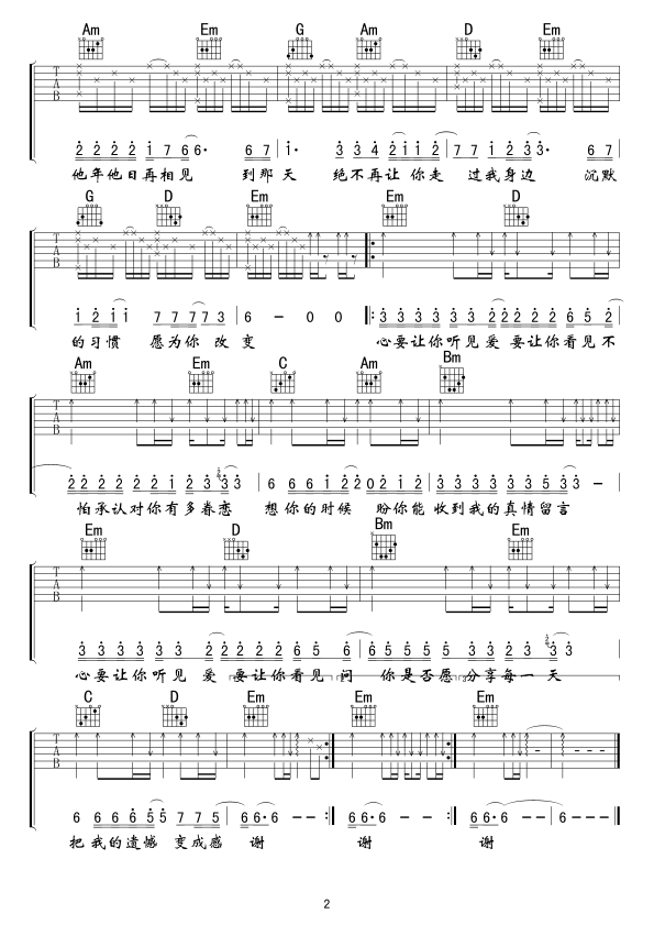 曲谱介绍: 《心要让你听见》吉他弹唱谱,共有2张高清图谱,免翻页排版设计。