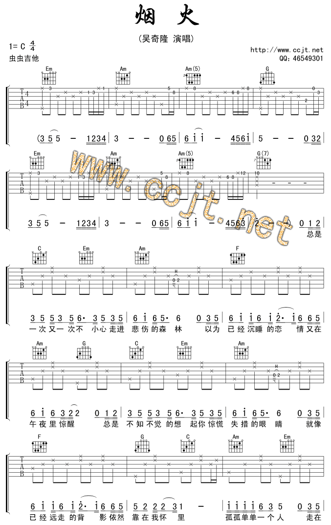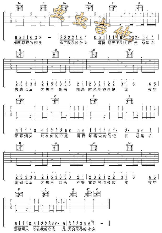 烟火吉他谱 - 吉他弹唱谱