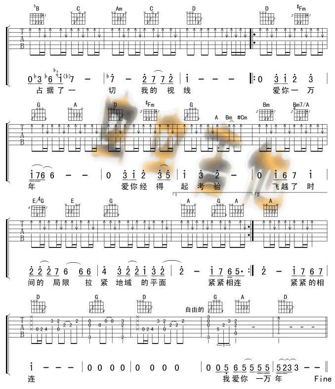 爱你一万年吉他谱 - 吉他弹唱谱