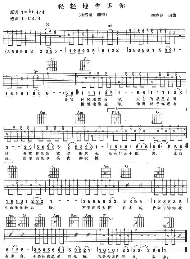 当前位置:琴谱网>吉他弹唱>轻轻地告诉你
