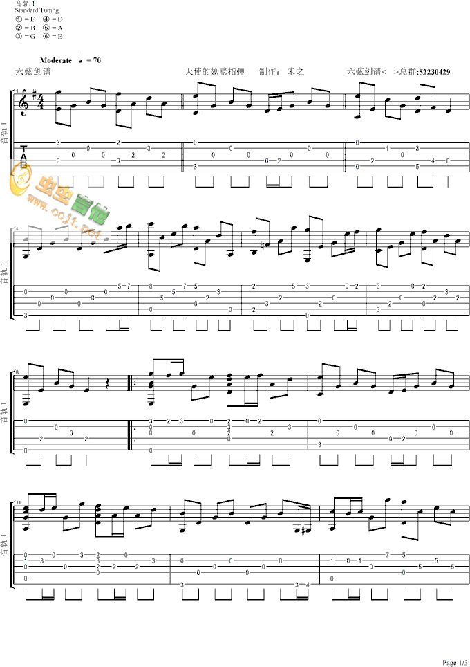 曲谱介绍: 《天使的翅膀》吉他独奏谱,共有3张高清图谱。