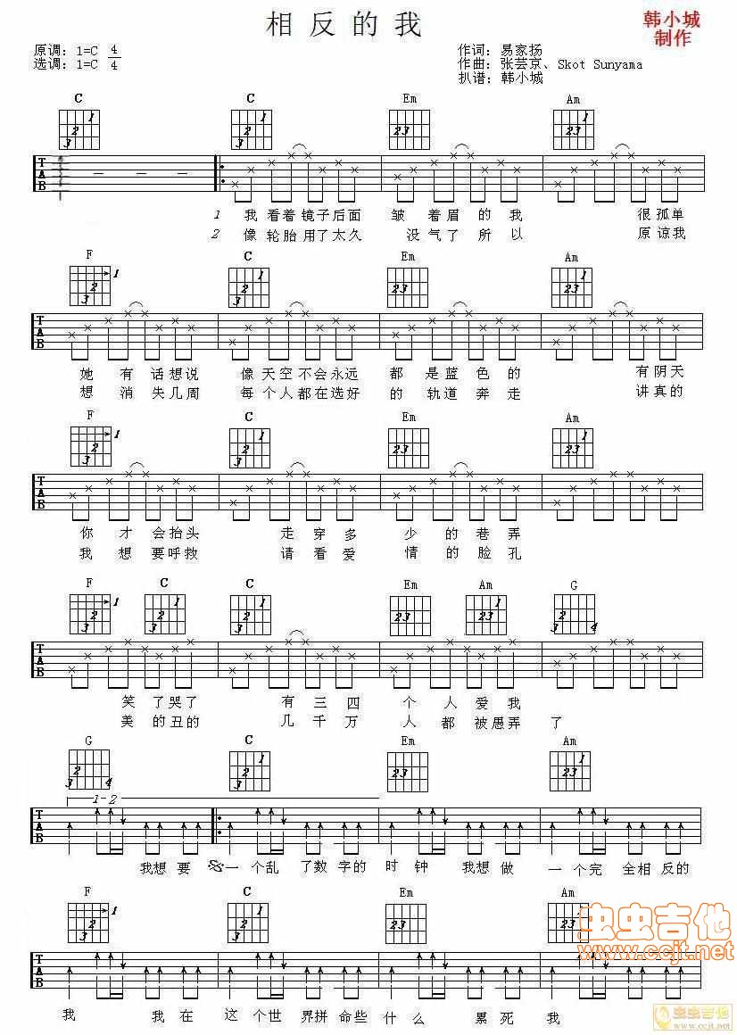相反的我六线吉他谱 - 吉他弹唱谱