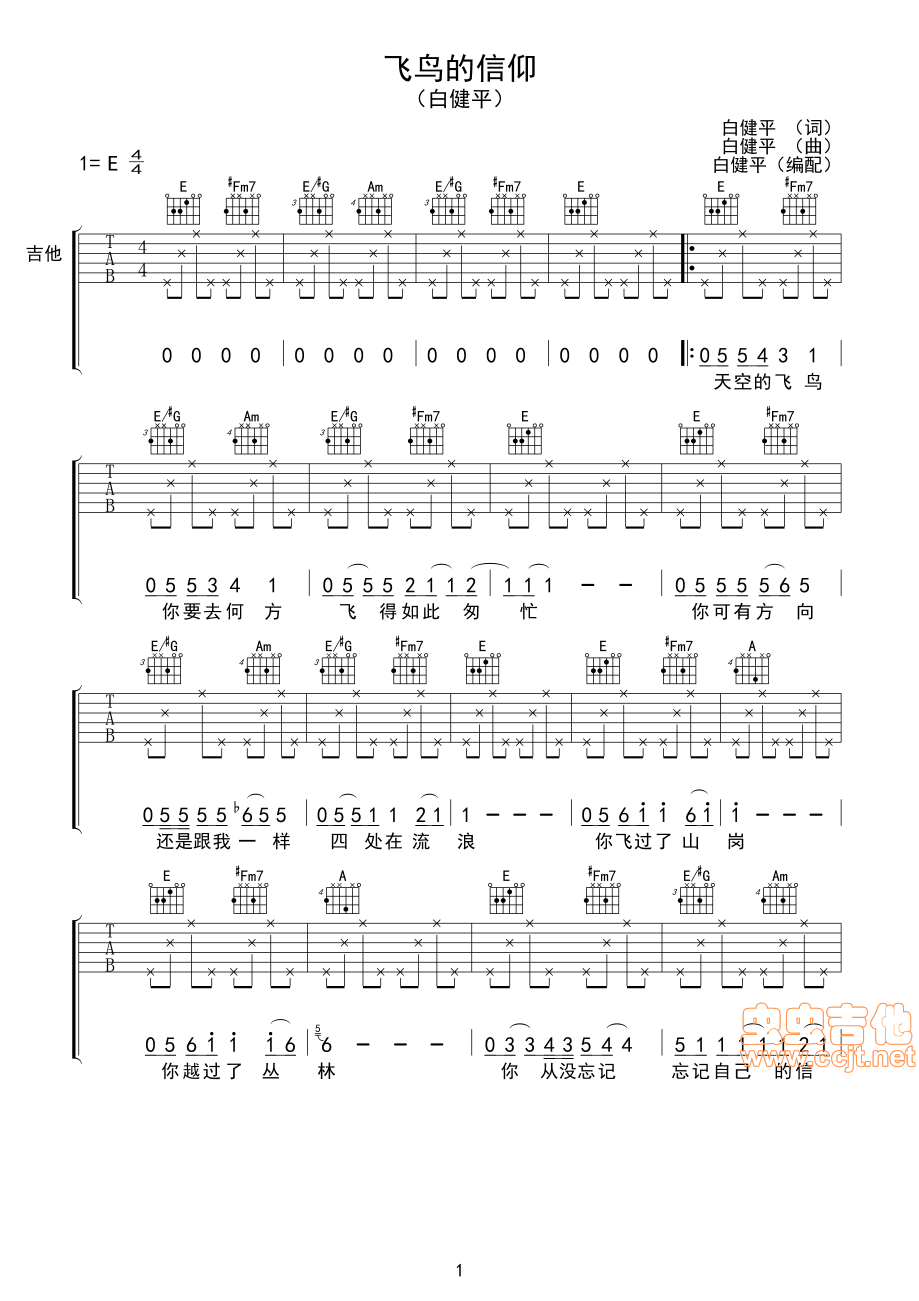 飞鸟的信仰吉他谱 - 吉他弹唱谱