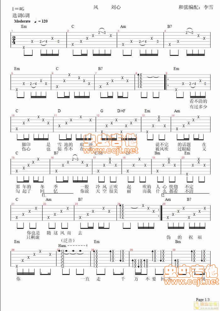 风刘心 基本原版吉他谱 - 吉他弹唱谱 - 原版