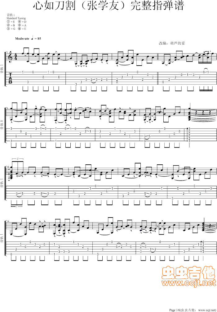 心如刀割完整吉他谱 - 吉他独奏谱