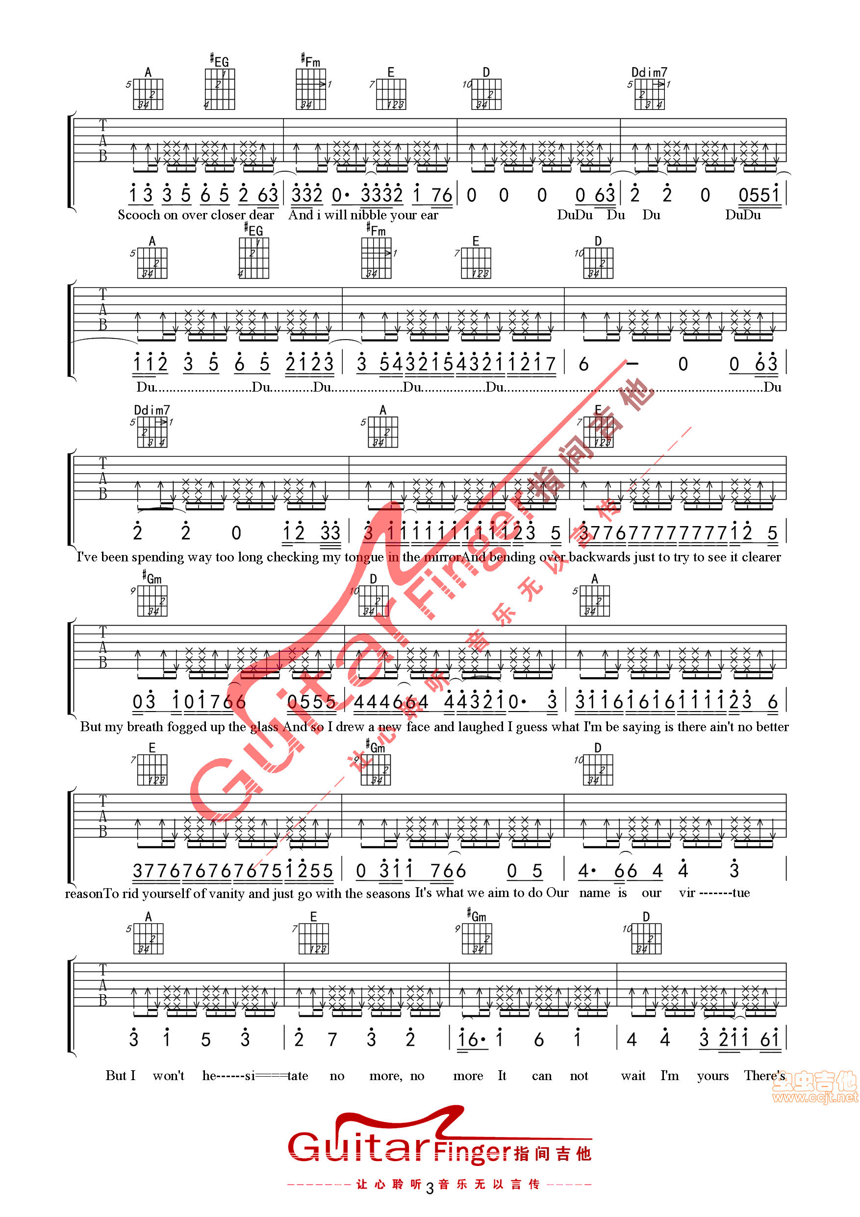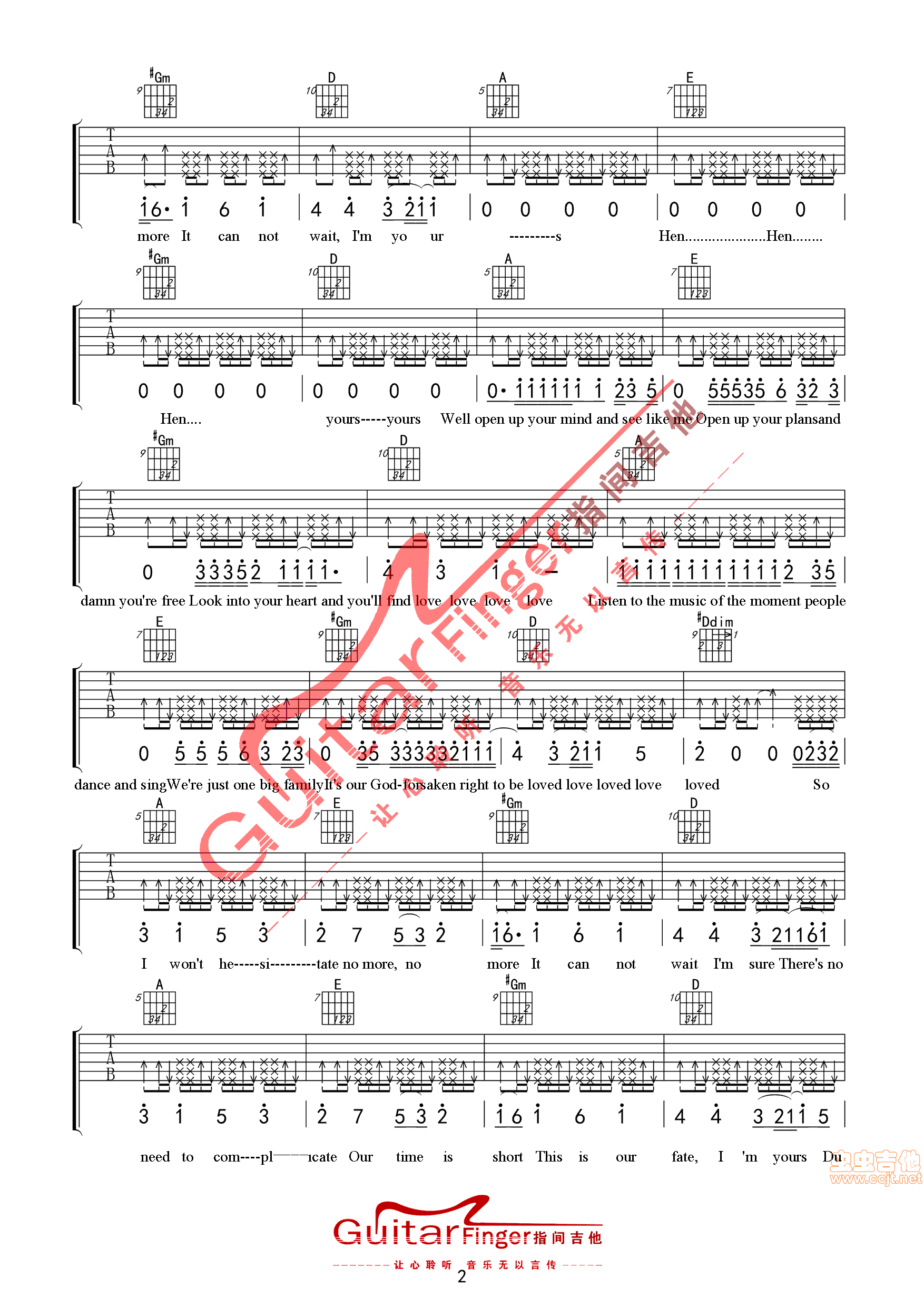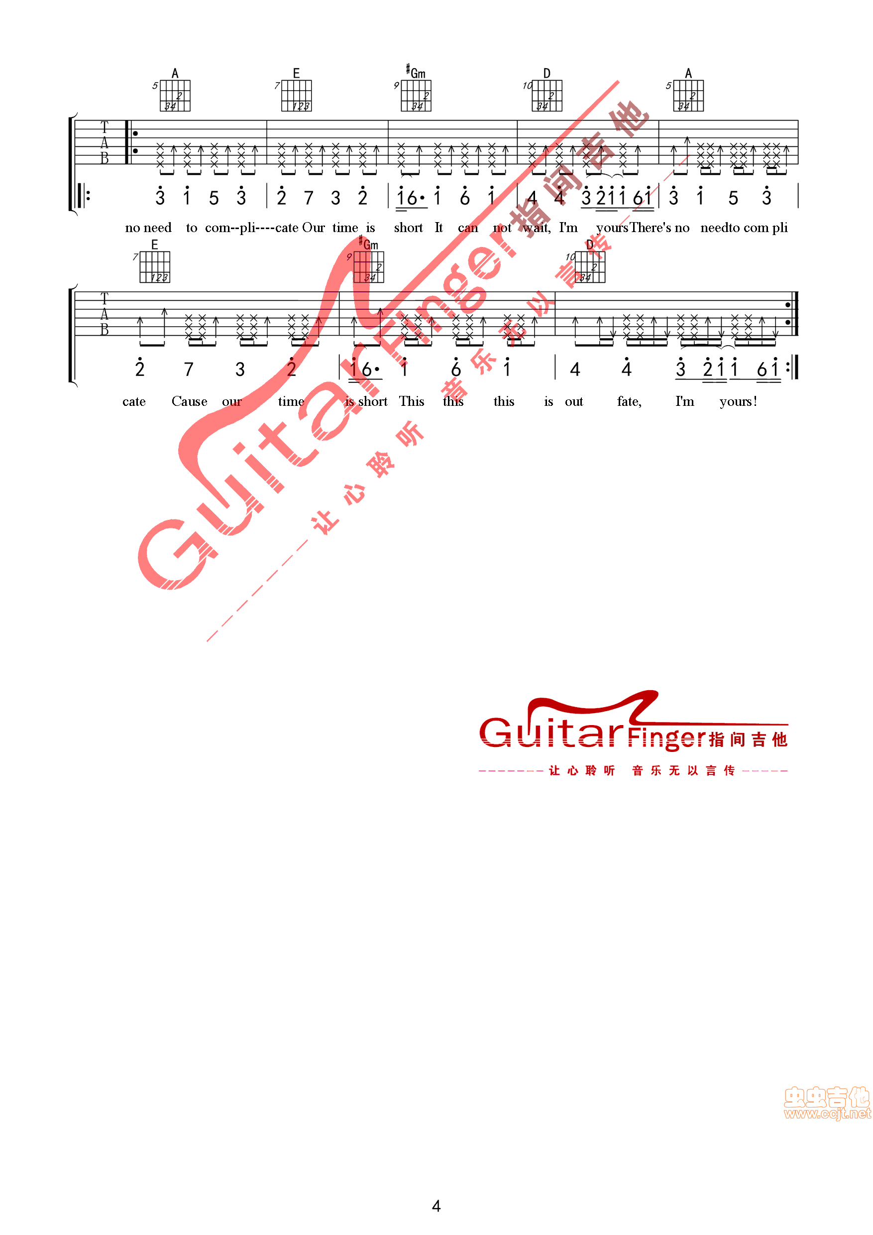 曲谱介绍: I'm《I'myoursJasonMraz指间吉他高清》吉他弹唱谱,共有4张高清图谱。