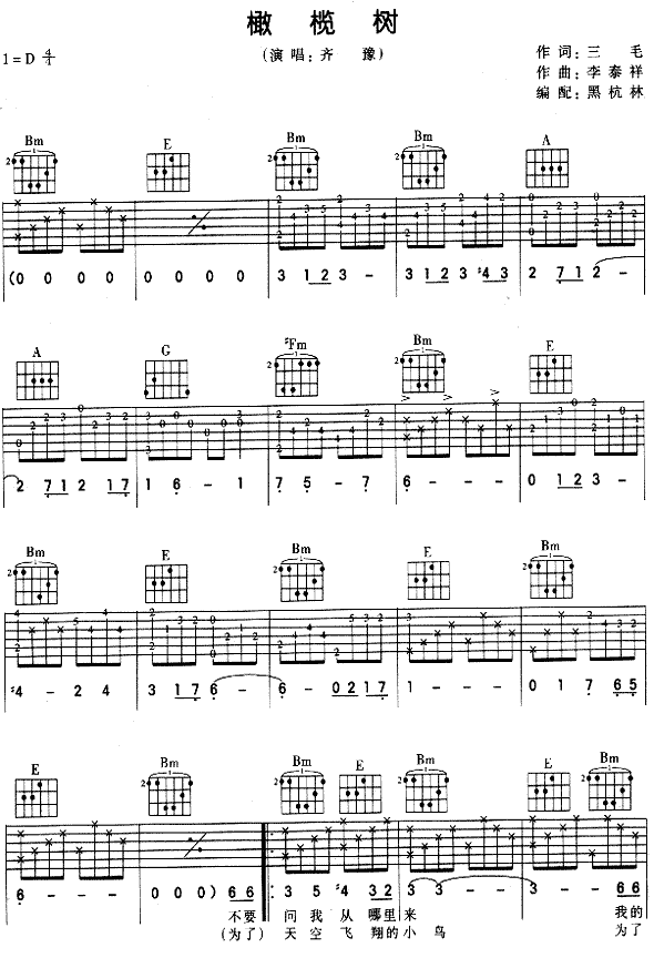 当前位置:琴谱网>吉他弹唱>橄榄树