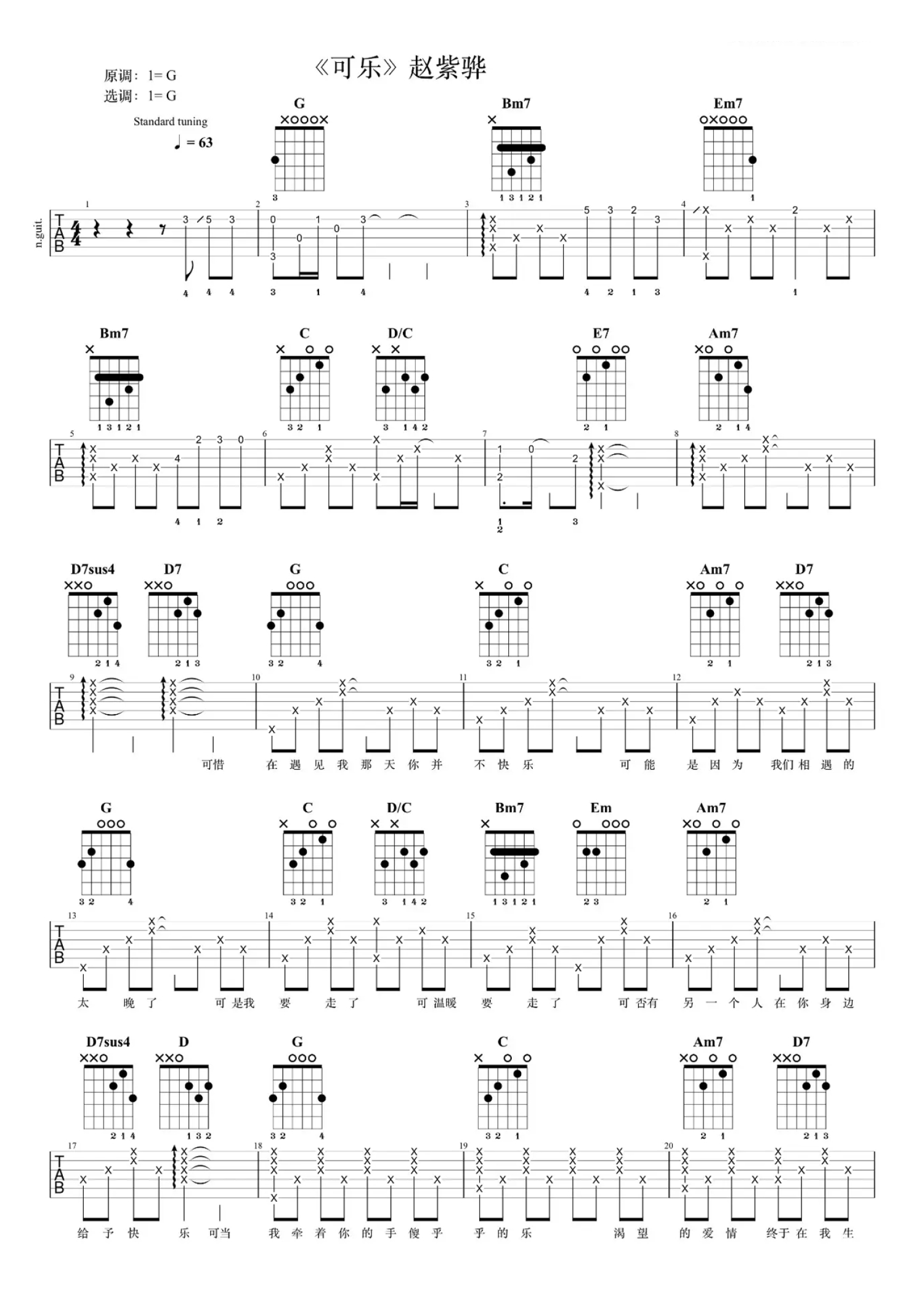 曲谱介绍: 赵浴辰/赵紫骅《可乐》吉他谱_G调吉他弹唱谱