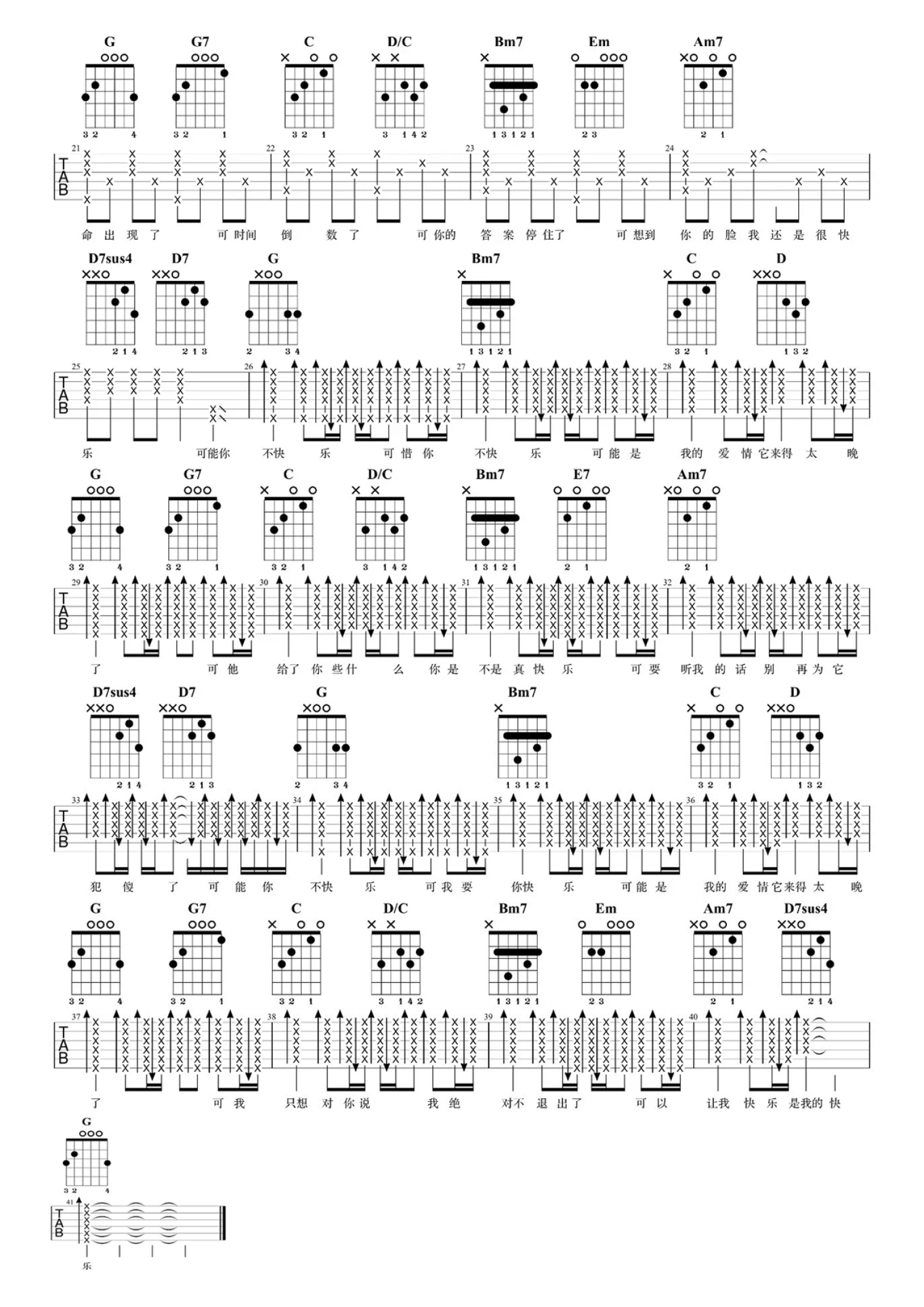 吉他弹唱G调来源:7T吉他教室829 浏览2020-04-11 12:15发布图谱共2页