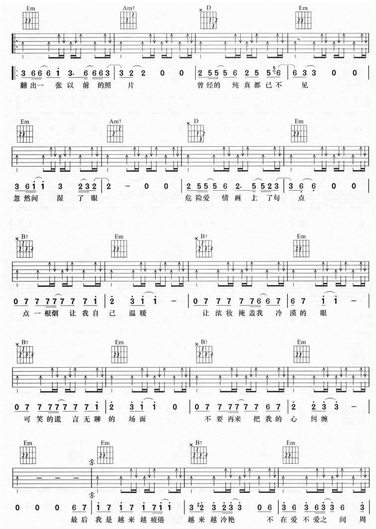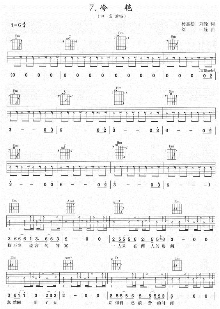 曲谱介绍: 冷艳《冷艳》吉他弹唱谱,共有3张高清图谱。