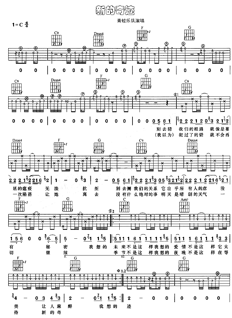 曲谱介绍: 《新的奇迹》吉他弹唱谱,共有2张高清图谱,免翻页排版设计。