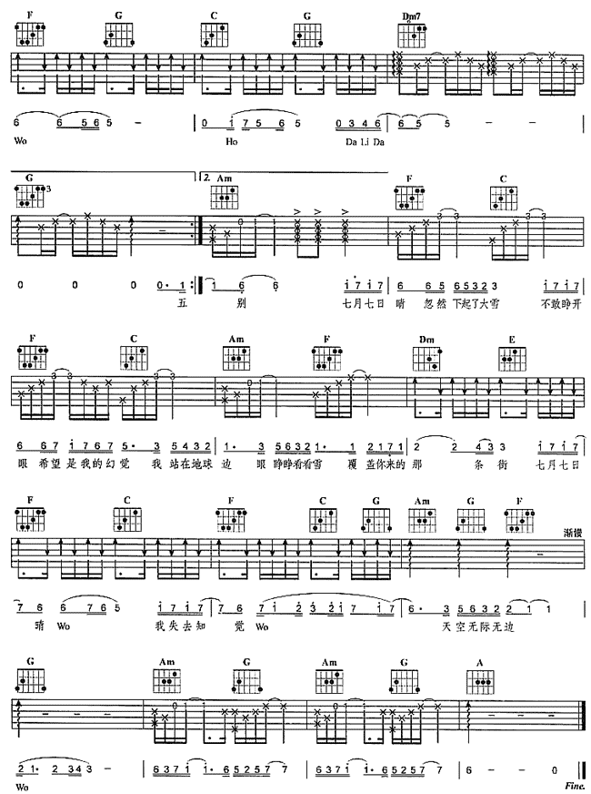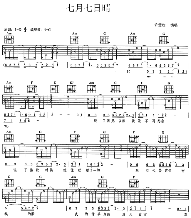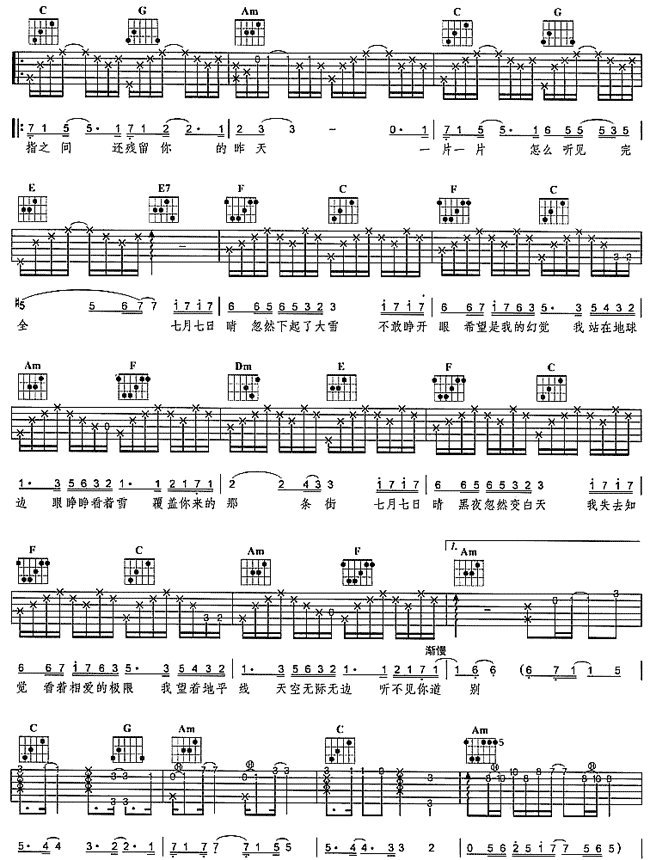 七月七日晴吉他谱 - 七月七日晴 - 吉他弹唱谱