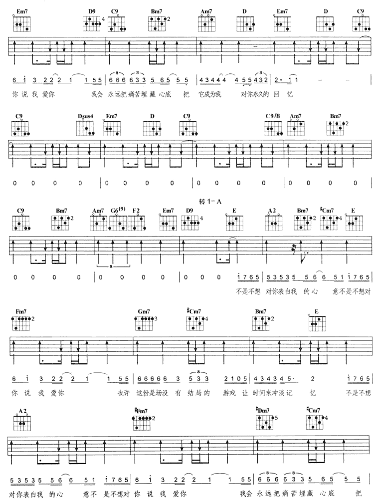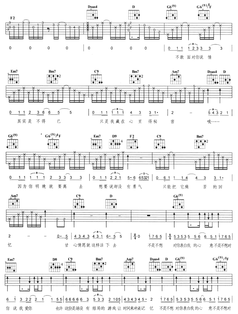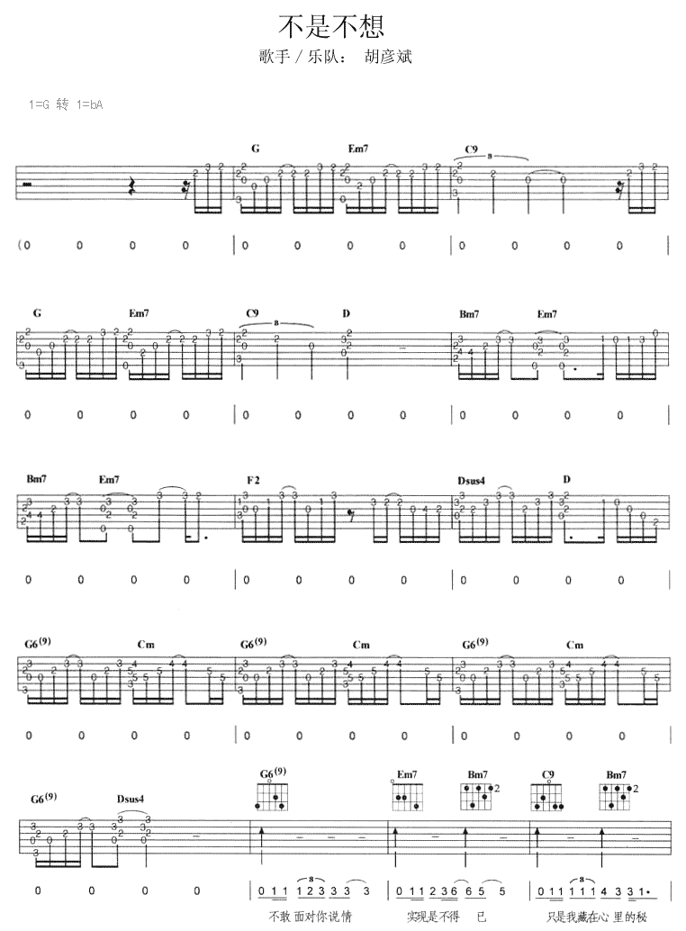 曲谱介绍: 《不是不想》吉他弹唱谱,共有5张高清图谱。