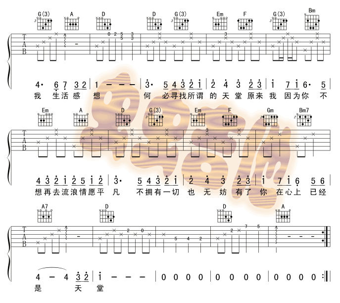 天堂吉他谱 - 吉他弹唱谱