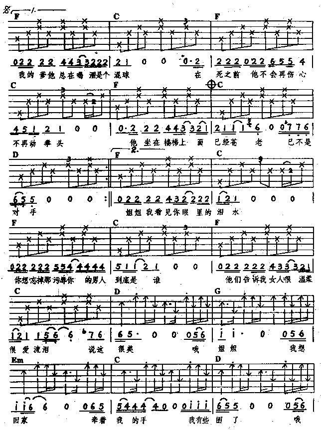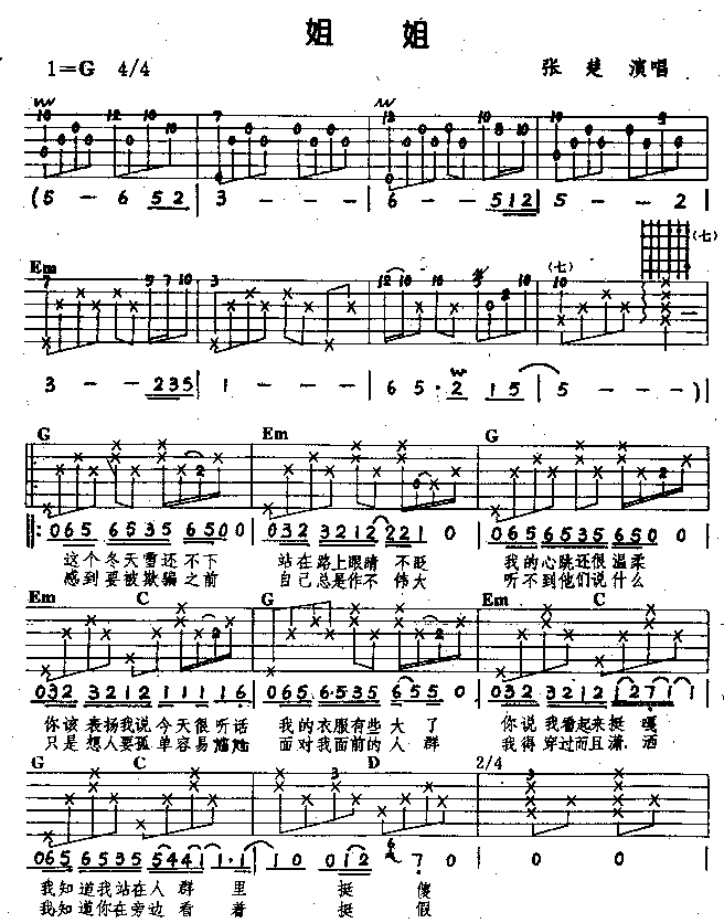 曲谱介绍: 《姐姐(版本2)》吉他弹唱谱,共有3张高清图谱。