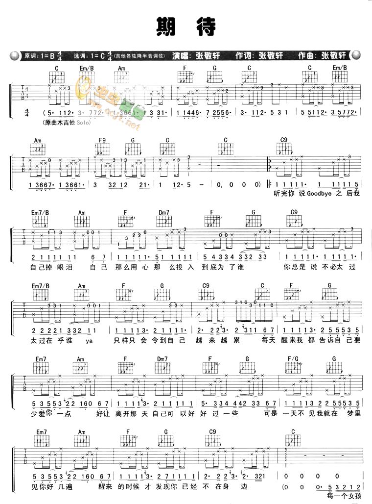 曲谱介绍: 《期待》吉他弹唱谱,共有2张高清图谱,免翻页排版设计。