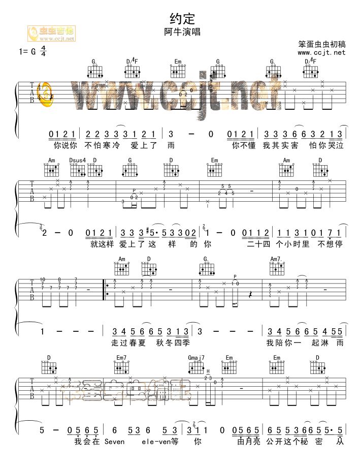 约定吉他谱 - 吉他弹唱谱