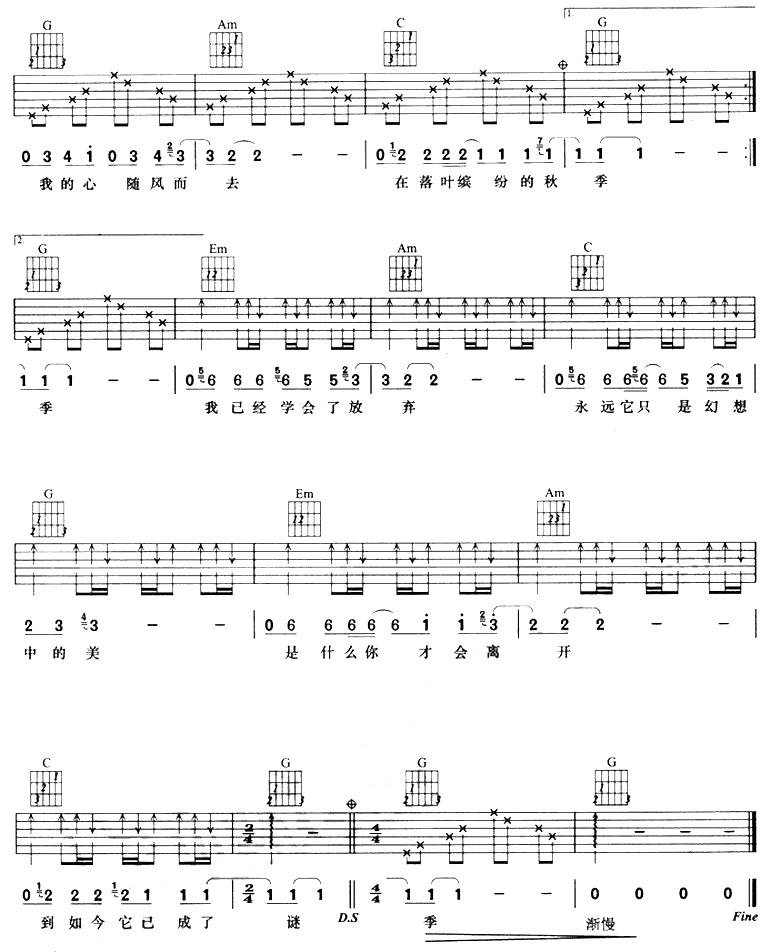 当前位置:琴谱网>吉他弹唱>随风而起