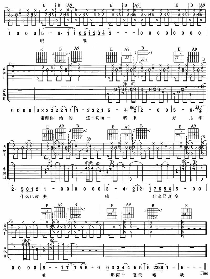 两个夏天(风华艺校版)吉他谱 - 吉他弹唱谱