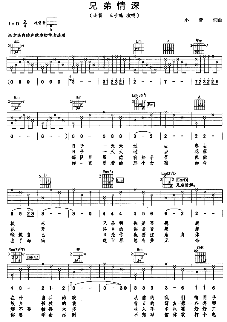 当前位置:琴谱网>吉他弹唱>兄弟情深