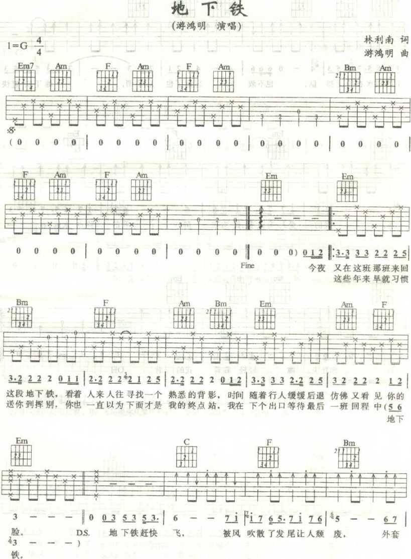 曲谱介绍: 游鸿明||《底下铁》吉他弹唱谱,共有2张高清图谱,免翻页排版设计。