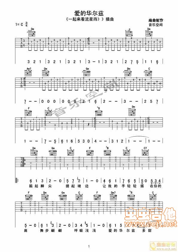 曲谱介绍: 《爱的华尔兹》吉他弹唱谱,共有3张高清图谱。