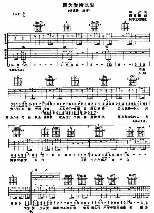 曲谱介绍: 《因为爱,所以爱》吉他弹唱谱,共有2张高清图谱,免翻页排版设计。