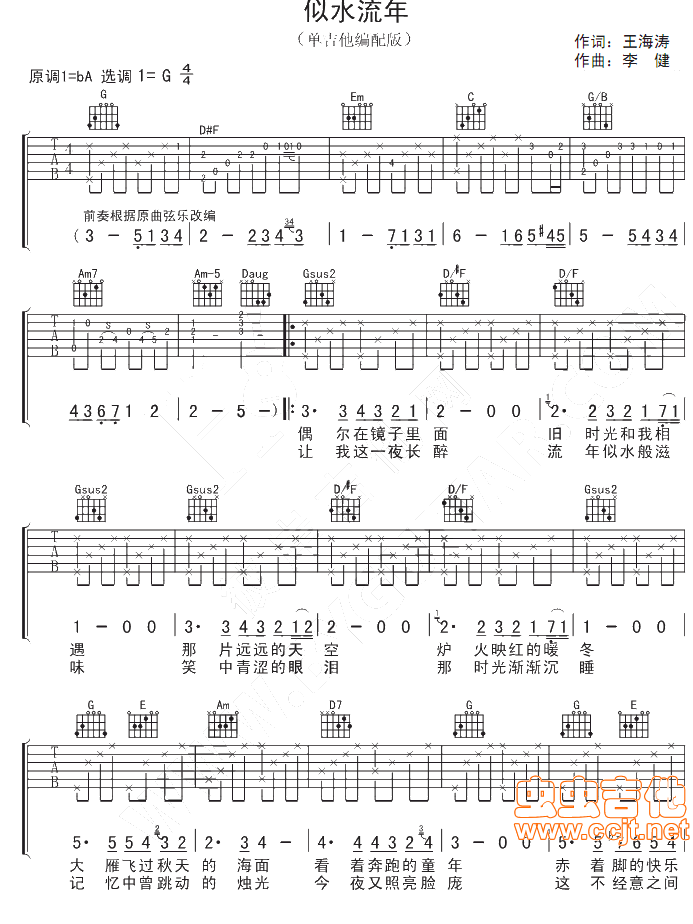 似水流年吉他谱 - 吉他弹唱谱