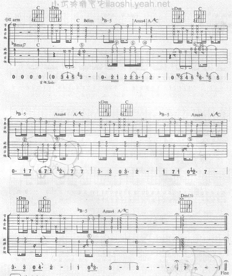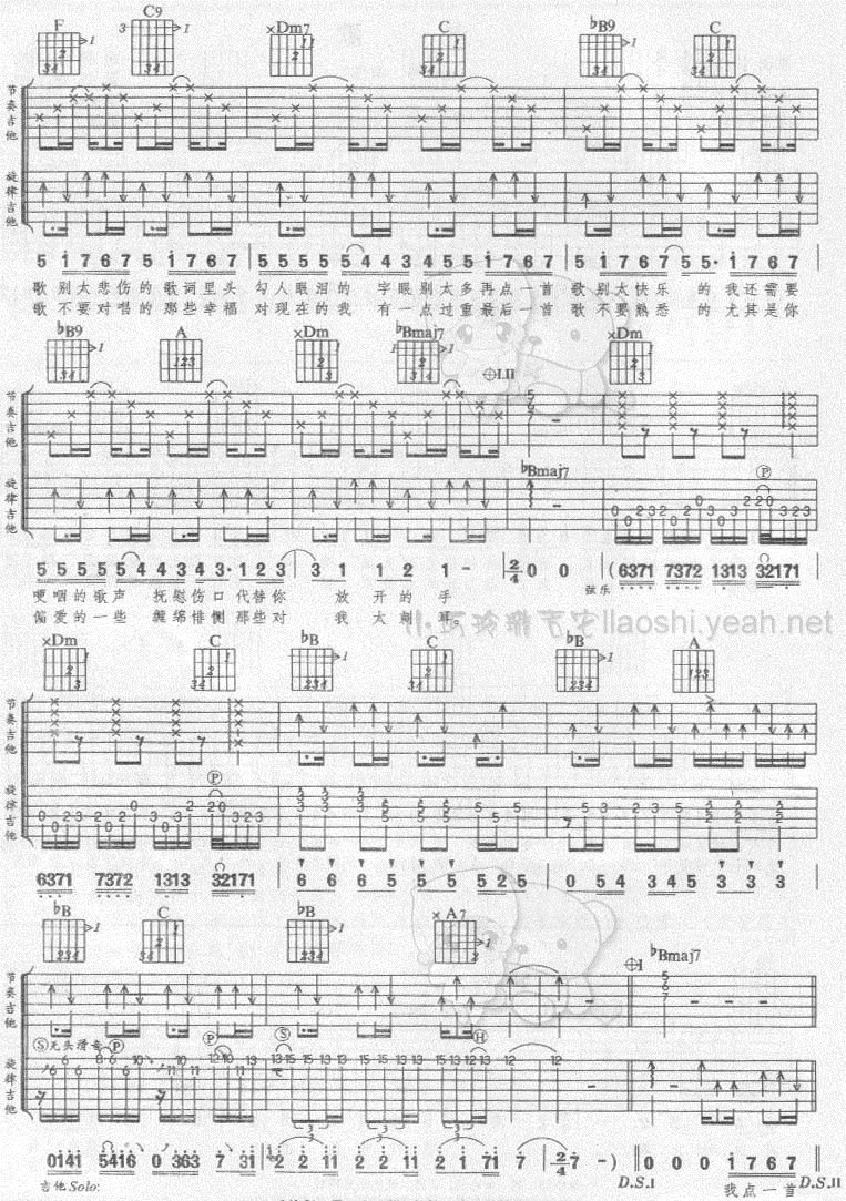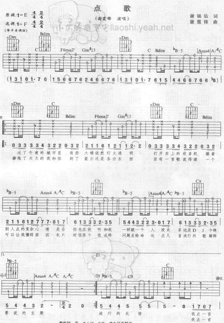 曲谱介绍: 《点歌》吉他弹唱谱,共有3张高清图谱。