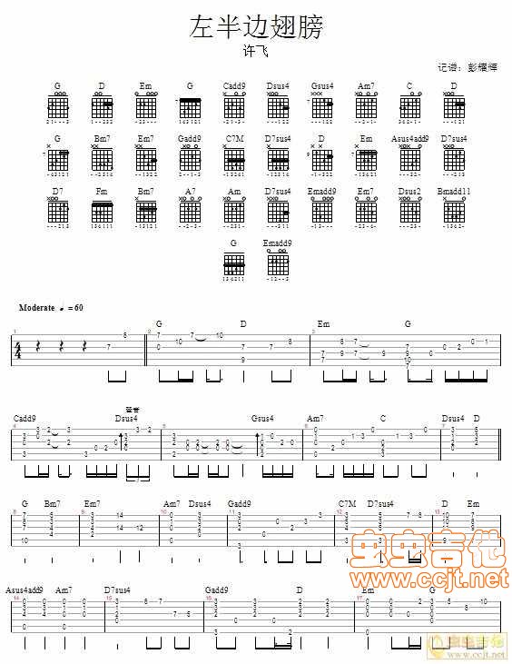 曲谱介绍: 《左半边翅膀》吉他弹唱谱,共有3张高清图谱。