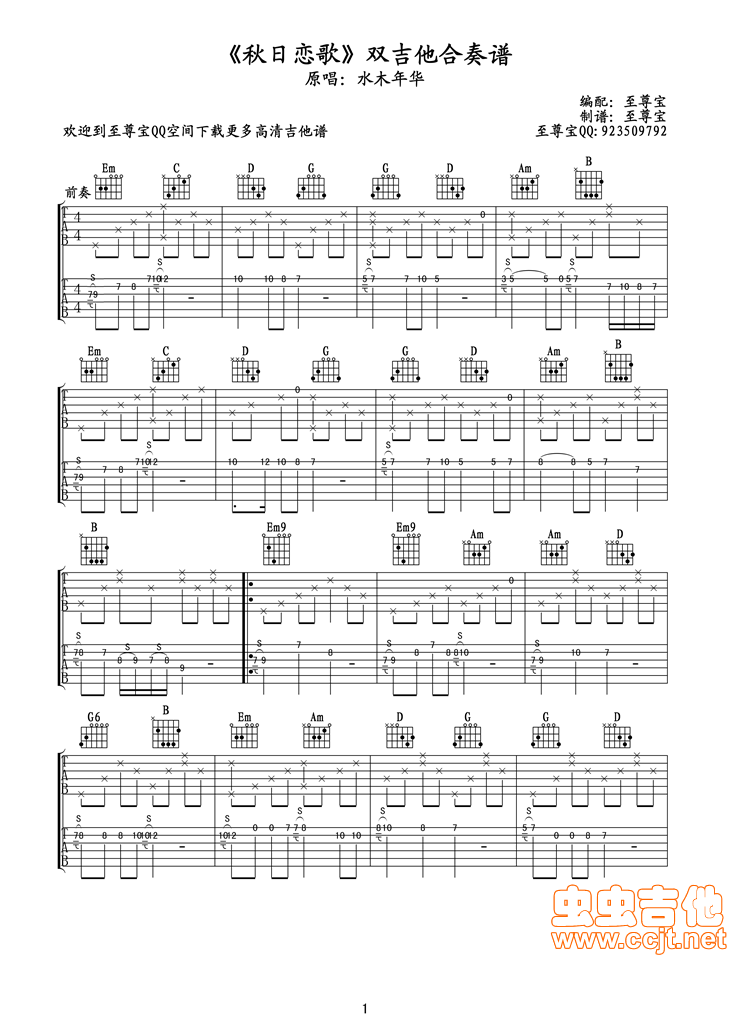 曲谱介绍: 《秋日恋歌》吉他独奏谱,共有3张高清图谱。