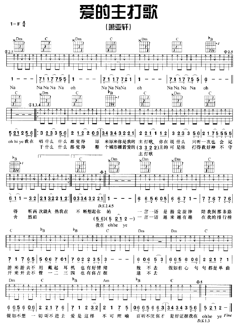 曲谱介绍: 《爱的主打歌》吉他弹唱谱,共有1张高清图谱,免翻页排版设计。