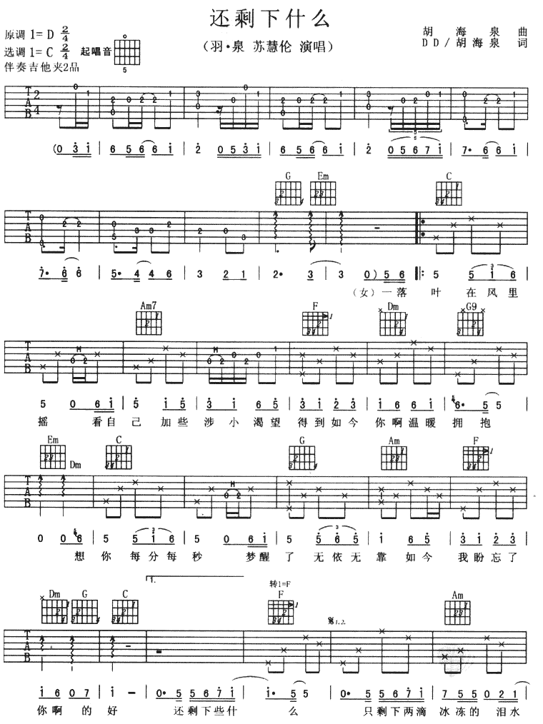 还剩下什么吉他谱 - 吉他弹唱谱
