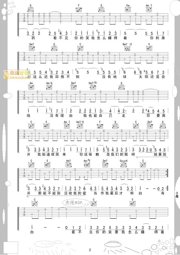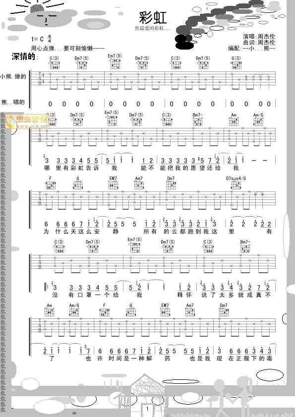 曲谱介绍: 《彩虹》吉他弹唱谱,共有3张高清图谱。