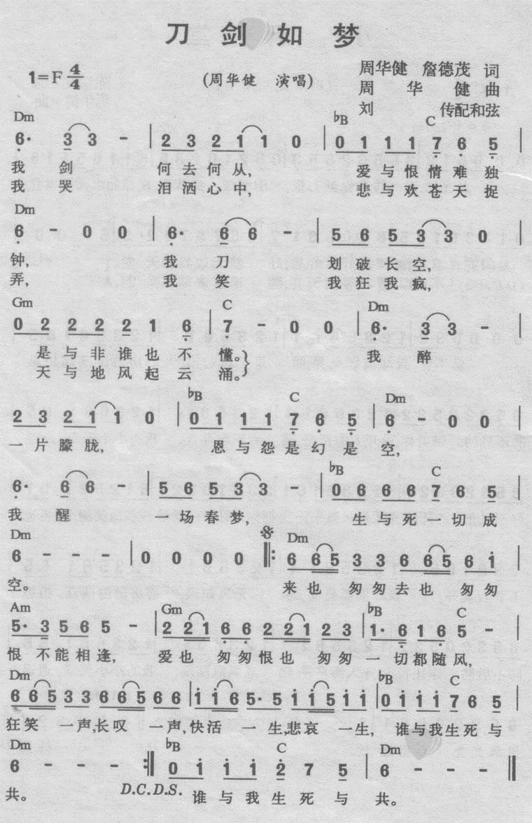 曲谱介绍: 《刀剑如梦》吉他弹唱谱,共有1张高清图谱,免翻页排版设计。