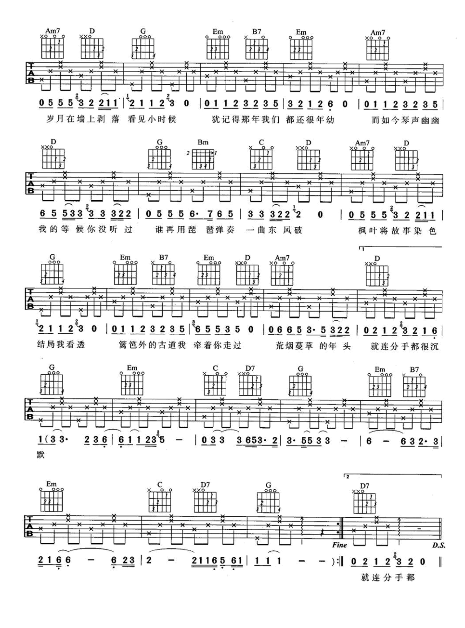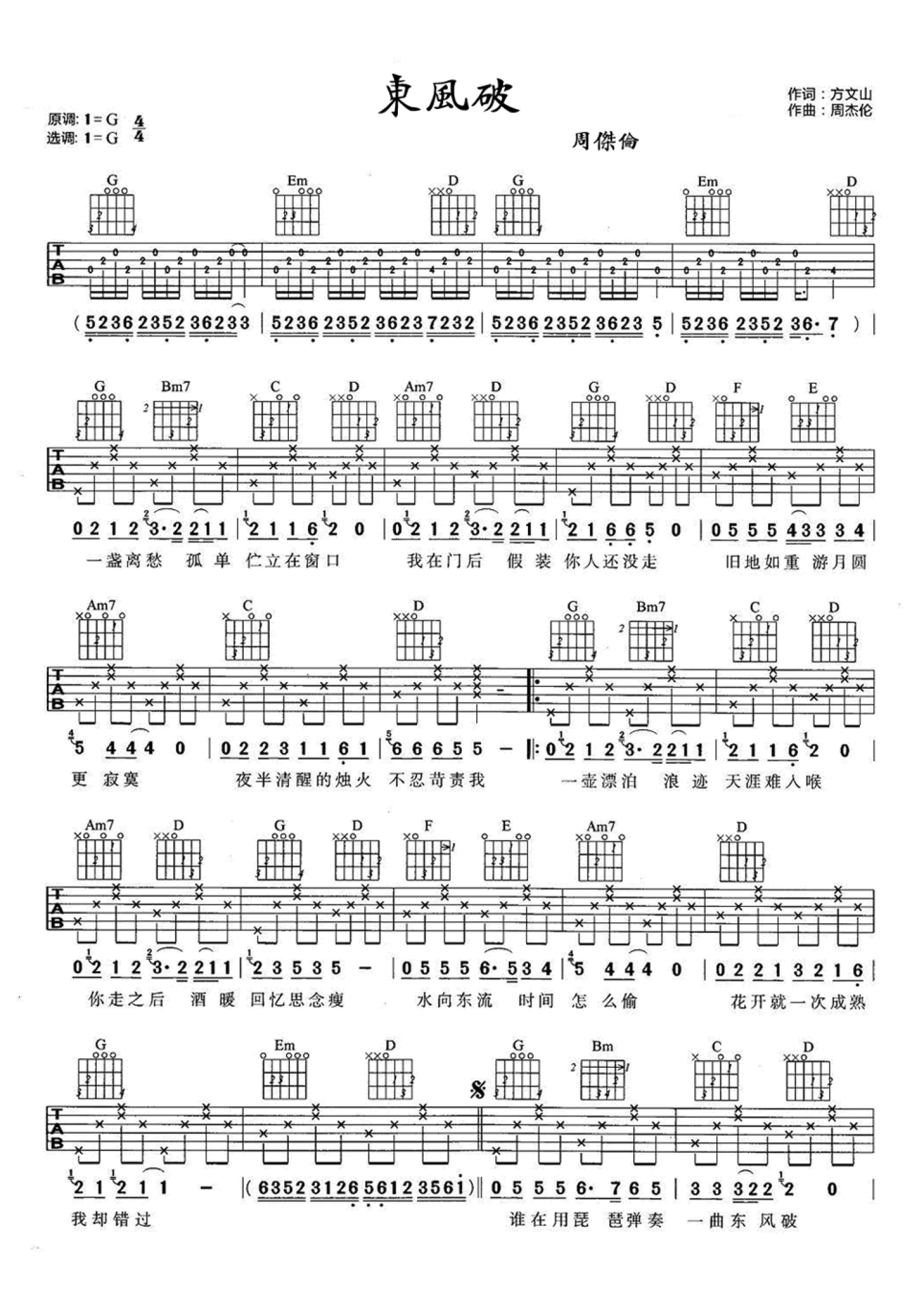 东风破吉他谱 - 周杰伦 - G调吉他弹唱谱