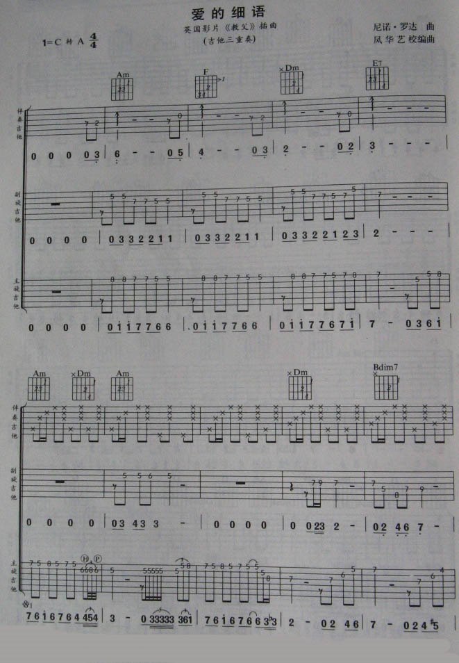 曲谱介绍: 《爱的细语》吉他弹唱谱,共有4张高清图谱。