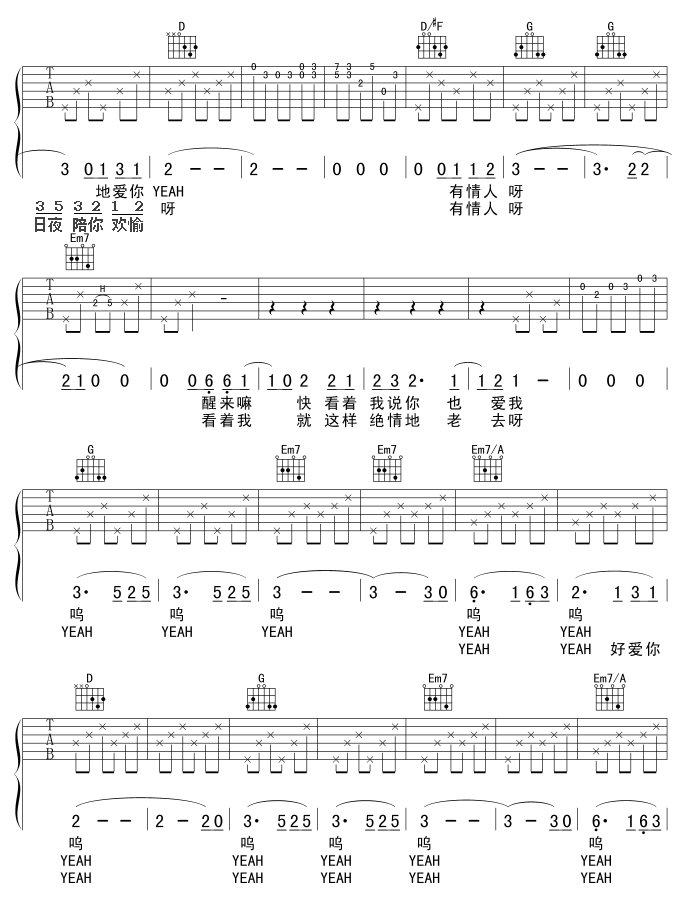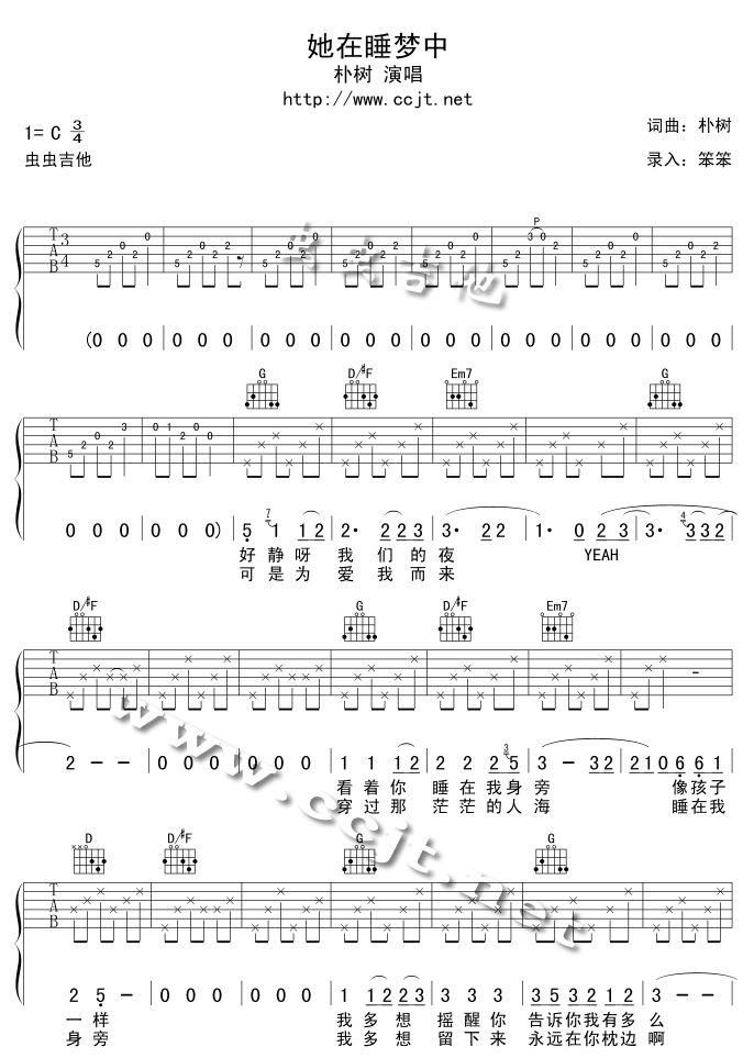 她在睡梦中吉他谱 - 吉他弹唱谱