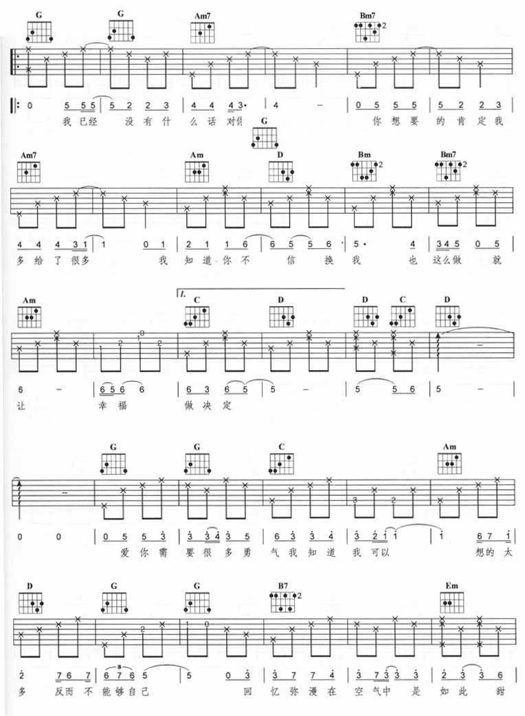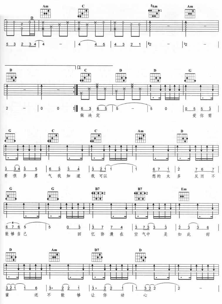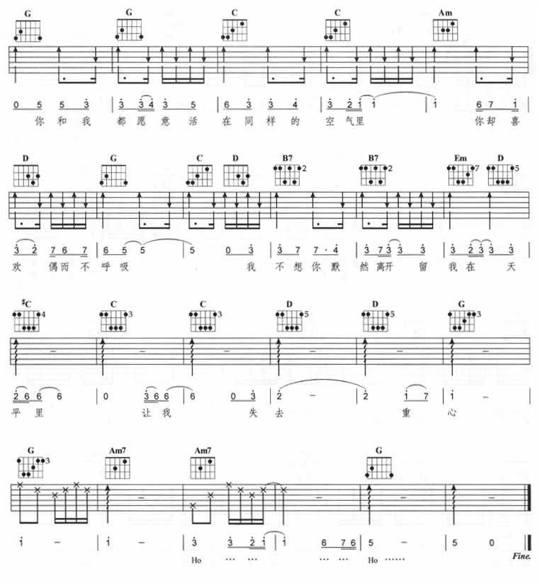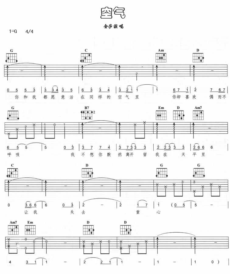 曲谱介绍: 《空气》吉他弹唱谱,共有5张高清图谱。