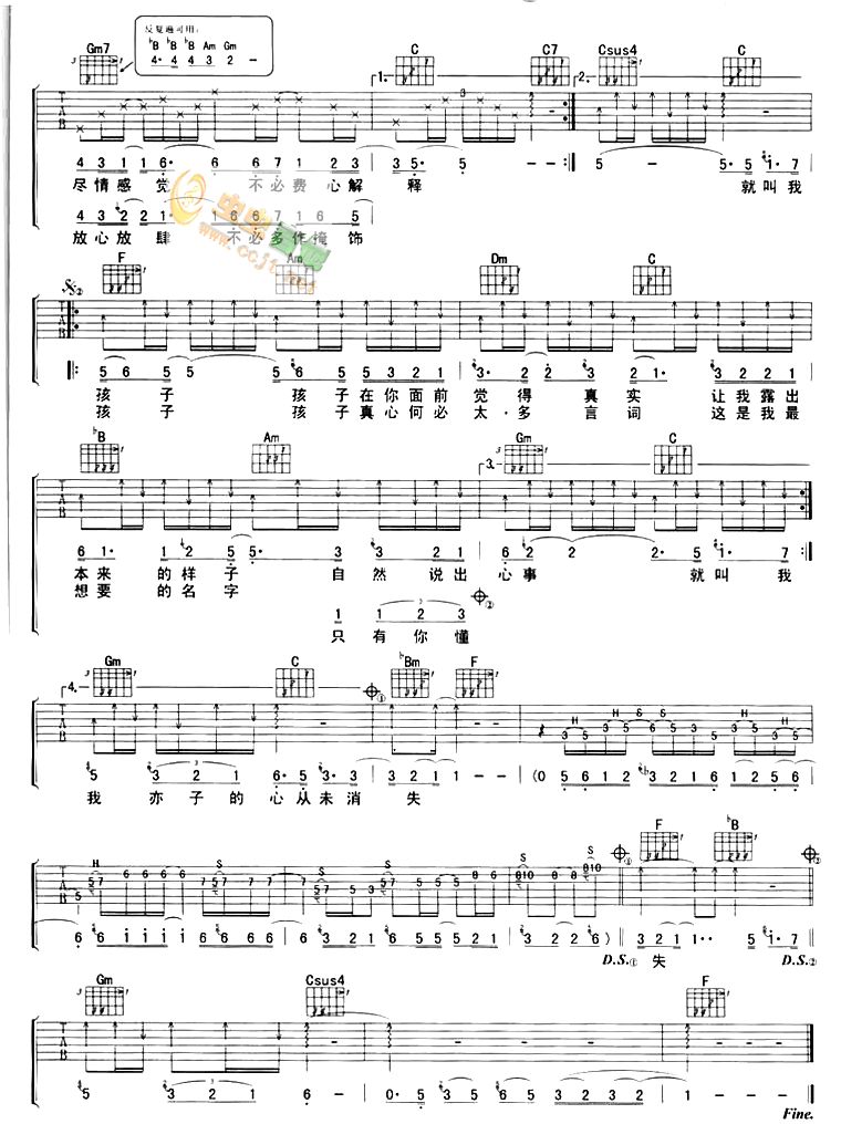 就叫我孩子吉他谱 - 吉他弹唱谱