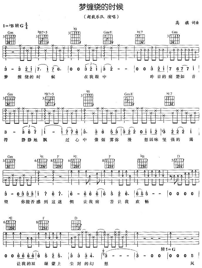 曲谱介绍: 《梦缠绕的时候》吉他弹唱谱,共有4张高清图谱。