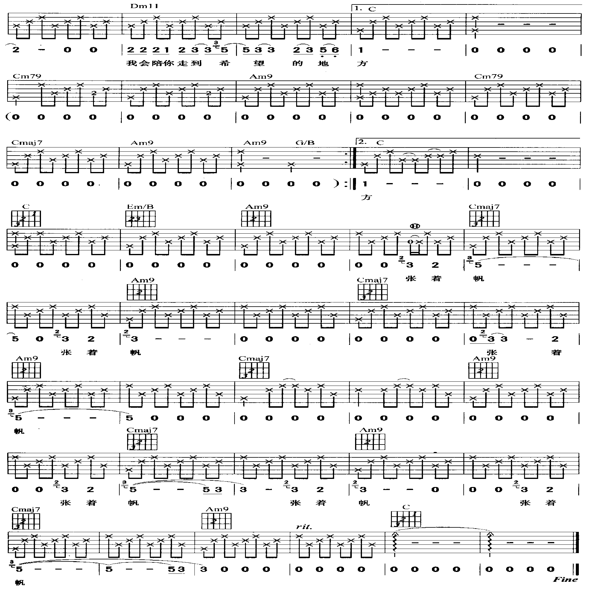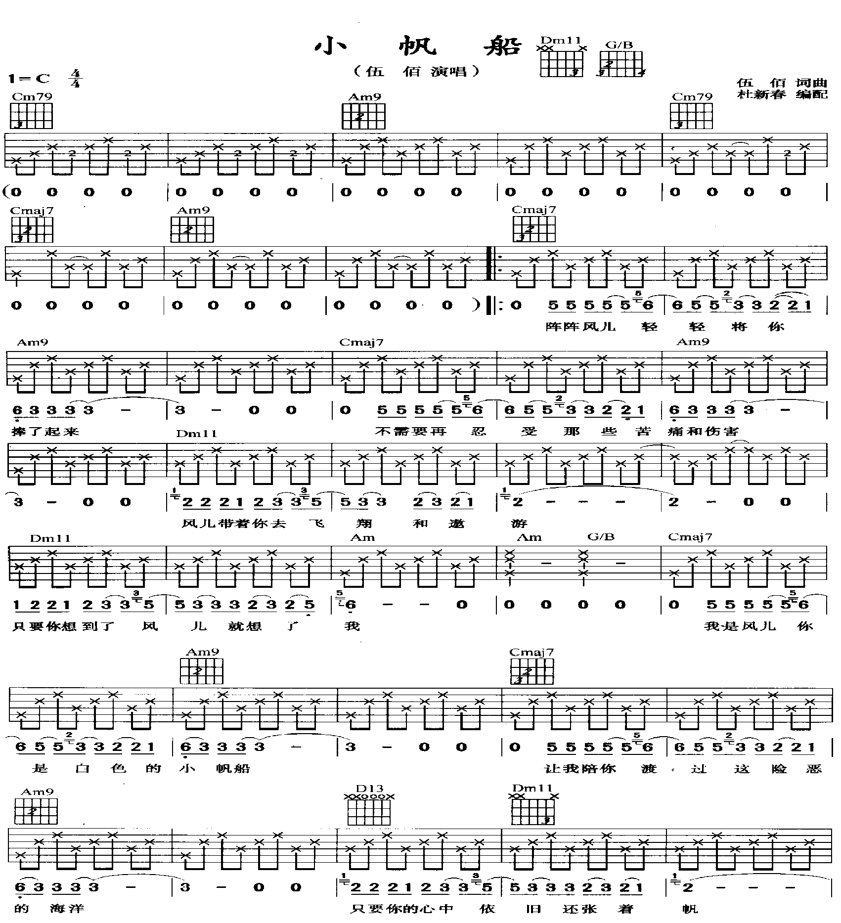 曲谱介绍: 《小帆船》吉他弹唱谱,共有2张高清图谱,免翻页排版设计。