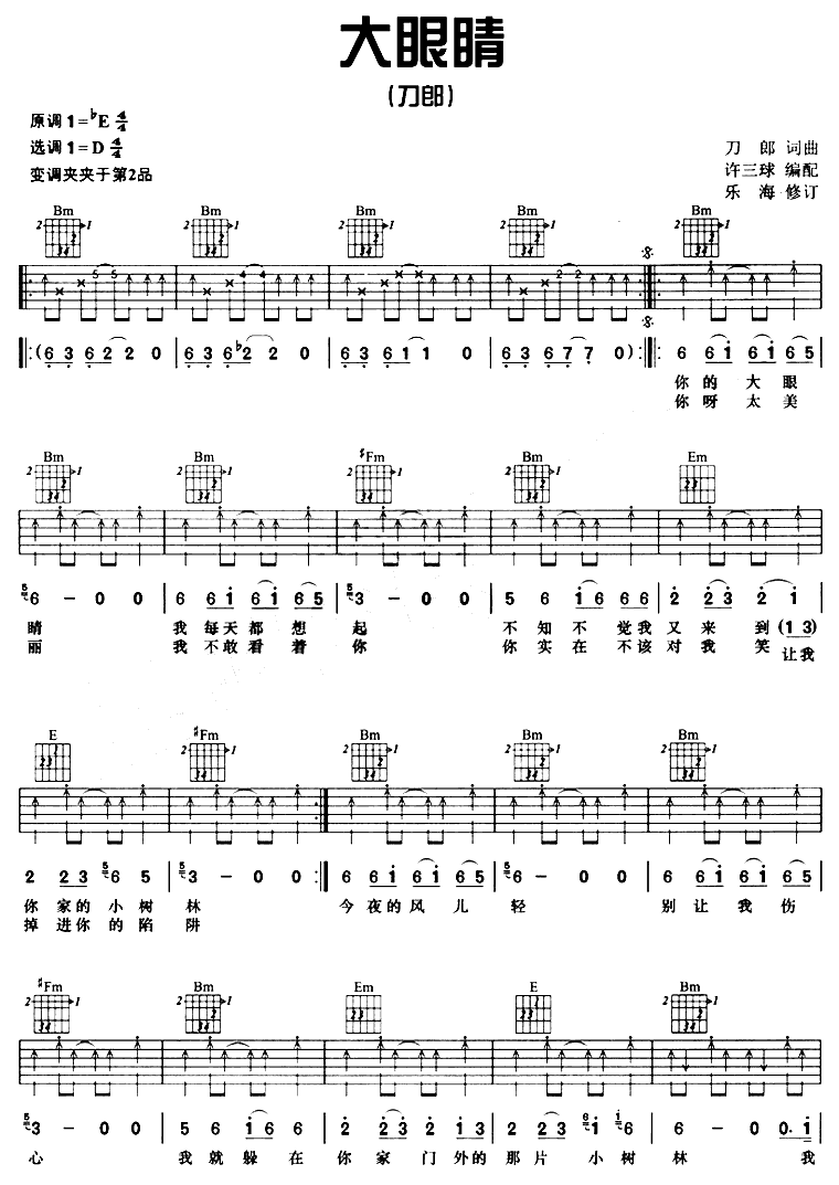 大眼睛吉他谱 - 吉他弹唱谱