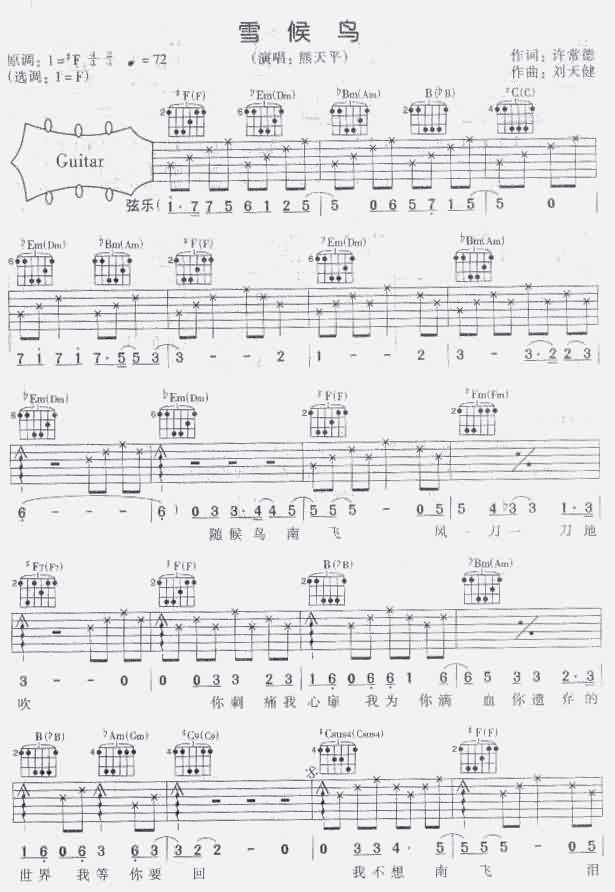 雪侯鸟吉他谱 - 吉他弹唱谱