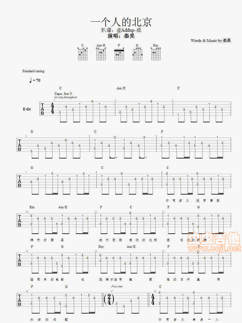 一个人的北京吉他谱 - 吉他弹唱谱
