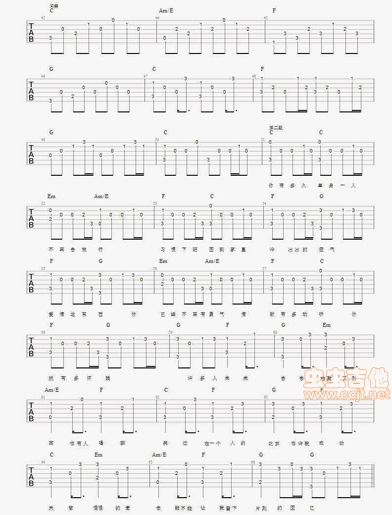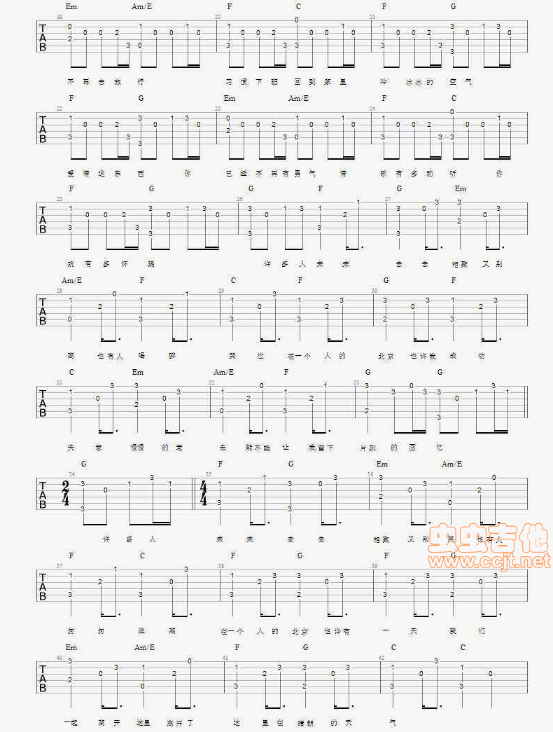 当前位置:琴谱网>吉他弹唱>一个人的北京